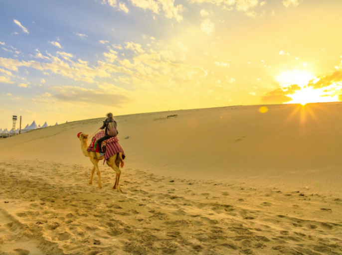 Saat 14.30’da, otelimizin önünden hareket eden 4x4 jeep araçlarla çöl safarisi için Mesaieed bölgesine doğru yola çıkıyoruz. İlk olarak bedevi çadırlarının bulunduğu alanda mola veriyor, burada develerle fotoğraf çektirme ve kısa süreli gezinti imkânı buluyoruz. Molanın ardından Mesaieed ile Inland Sea (İç Deniz) arasında gerçekleştireceğimiz safari sırasında, kum tepeleri arasında unutulmaz bir off-road deneyimi yaşıyor ve belirlenen noktalarda fotoğraf molaları veriyoruz.